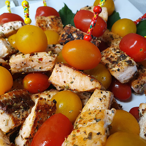 Mediterrane Lachs Spießchen