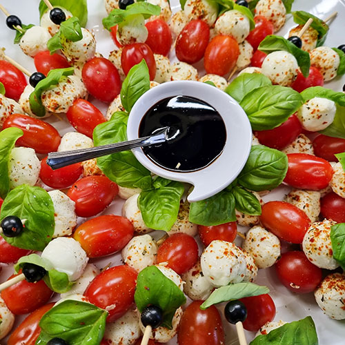 Mini-Tomate-Mozzarella mit frischem Basilikum und Balsamico Creme