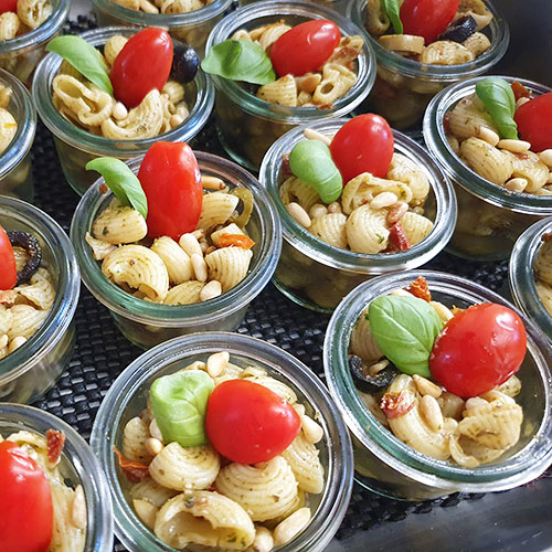 Wir halten eine große Auswahl verschiedener Fingerfoodspießchen, Fingerfood im Weckgläschen, Fingerfoodwraps, auch vegetarisch und vegan für Sie bereit. Außerdem bieten wir eine fein belegte MiniBurger, Sandwich, oder Belegte Halbe Gourmet Partybrötchen an.
