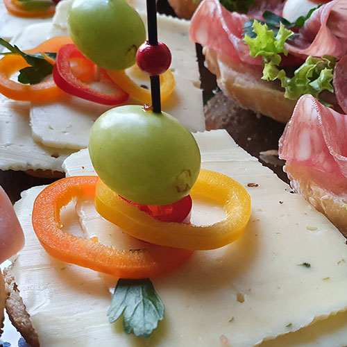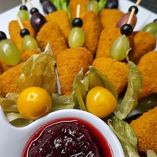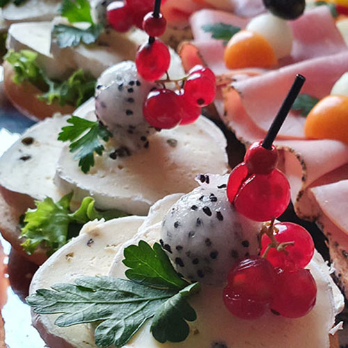 Wir halten eine große Auswahl verschiedener Fingerfoodspießchen, Fingerfood im Weckgläschen, Fingerfoodwraps, auch vegetarisch und vegan für Sie bereit. Außerdem bieten wir eine fein belegte MiniBurger, Sandwich, oder Belegte Halbe Gourmet Partybrötchen an.