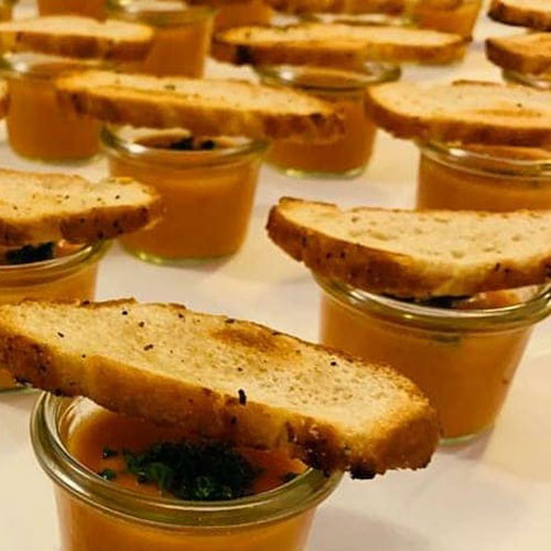 Erfrischende Gazpacho, im Fingerfood-Weckgläschen vegan - Mit gerösteten Crostini