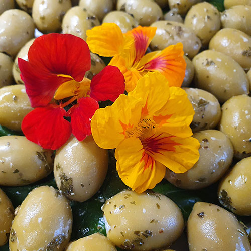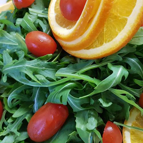 lecker mariniert, mit knackigem Rucola, fruchtigen Cherrytomaten, Grana Padano und gerösteten Pinienkernen