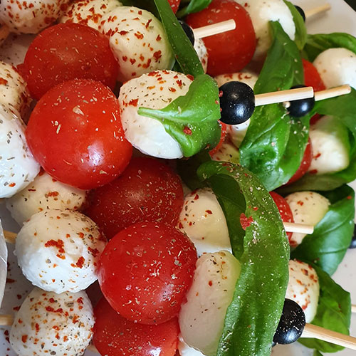 Fruchtige Tomaten mariniert mit feinen Zwiebelchen, aromatischem Basilikum und feinem Olivenöl verfeinert
